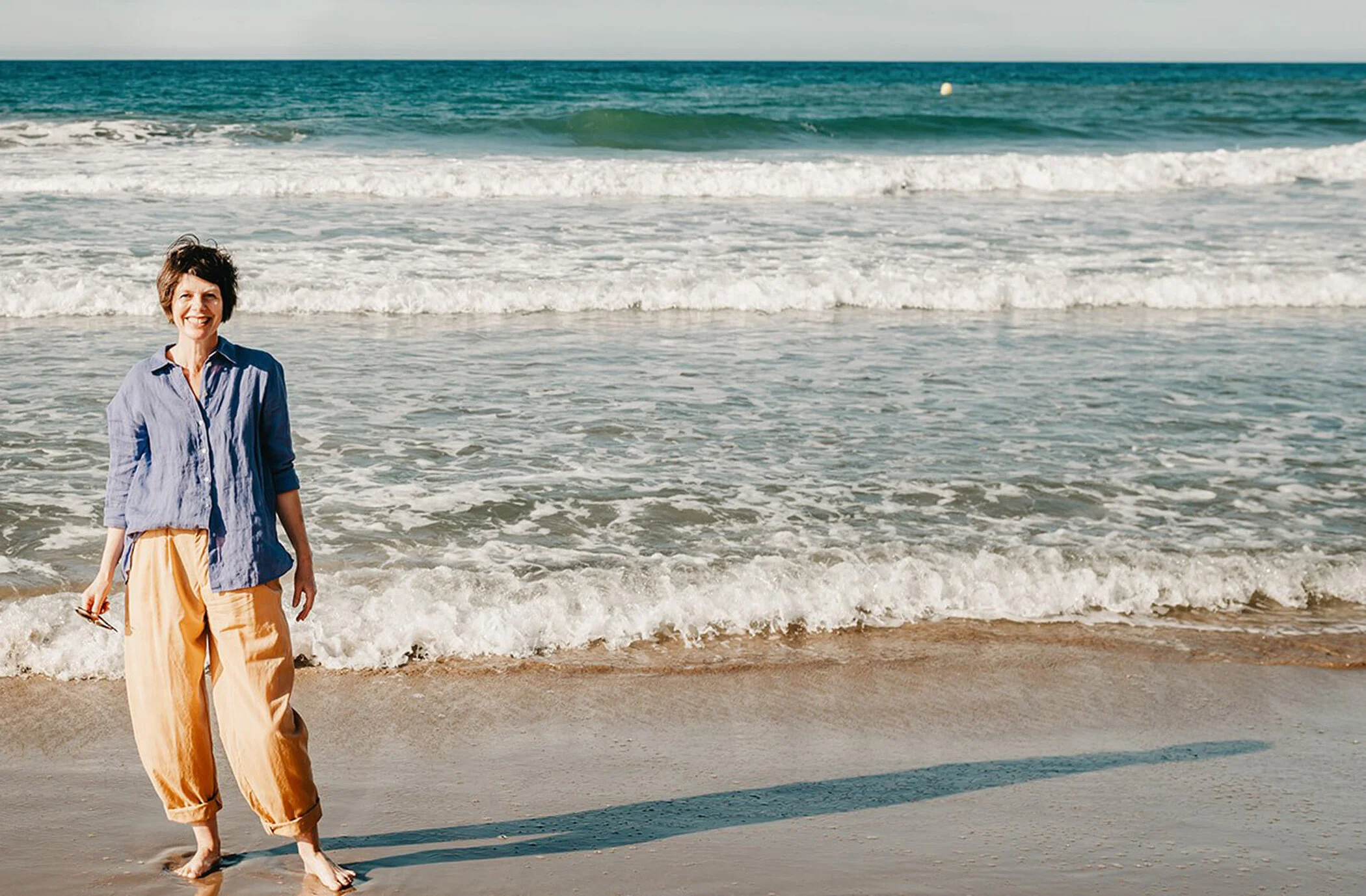 Walking on the beach (usually with a brown dog), somewhere south of Barcelona where the mountains meet the sea.
